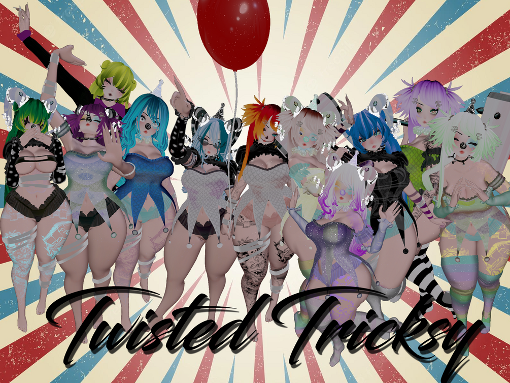 Head| Base Heavily edited by Spookiness (spooky) | |Hair | Hair |Hair |Horns | Bouncy Ball | Sockies | OUtfit | Undies and Ruffles | Necklace Necklace2 | Sleeves | Bandages | Top | Balloon| Trombone | Hat | Fluffs | Hammer / GogoLoco / Clone / edits, Emission Edits, Hair textures all Done by Shipwreck and Spooky unless stated otherwise Base edited by Spookiness DO NOT REUSE OUR TEXTURES, MATCAPS, OR EDITS OF ITEMS.